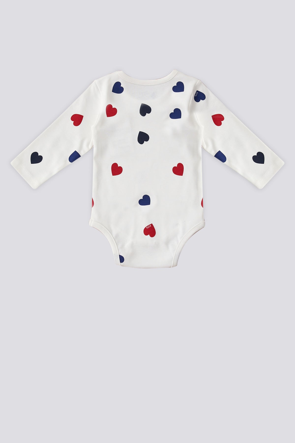 Set simpatičnih bodića za bebe sadrži dva komada sa veselim dezenima. Prvi bodi je ukrašen šarenim otiscima srca u crvenoj i plavoj boji, što ga čini razigranim i zabavnim izborom za svakodnevno nošenje. Drugi bodi je jednostavniji, sa jednim većim crvenim srcem na prednjem delu, što dodaje dašak slatkoće celokupnom izgledu. Oba bodića imaju dugi rukav, što ih čini praktičnim za hladnije dane, a izrađeni su od mekog i udobnog materijala koji je nežan za bebinu kožu. Sa praktičnim kopčanjem na dnu, ovi bodići olakšavaju presvlačenje, a njihov klasičan kroj omogućava slobodu pokreta za bebine avanture. Idealan su izbor za svakodnevne aktivnosti i udobnost vaše bebe.