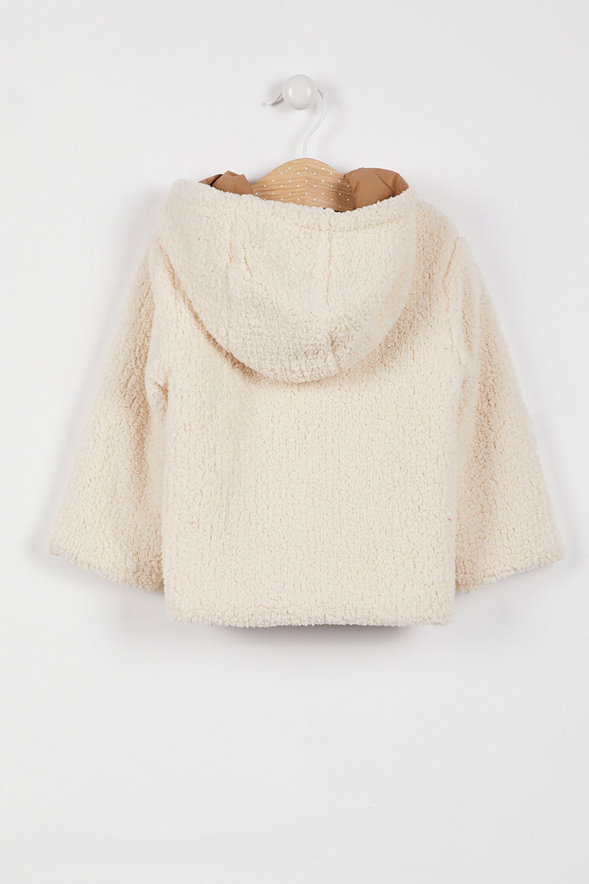 Topla dečija jakna od imitacije ovčjeg krzna savršena je za hladne zimske dane. U nežnoj bež boji sa smeđim džepovima koji dodaju kontrast, jakna je i praktična i stilizovana. Karakteriše je udoban kroj sa dovoljno prostora za slojevito oblačenje ispod. Zatvara se pomoću zipa, što olakšava oblačenje i svlačenje, a kapuljača pruža dodatnu zaštitu od hladnoće. Izrađena od mekog i izdržljivog materijala, ova jakna je idealna za svakodnevne avanture na otvorenom, kao i za odlaske u školu ili igru u parku.
