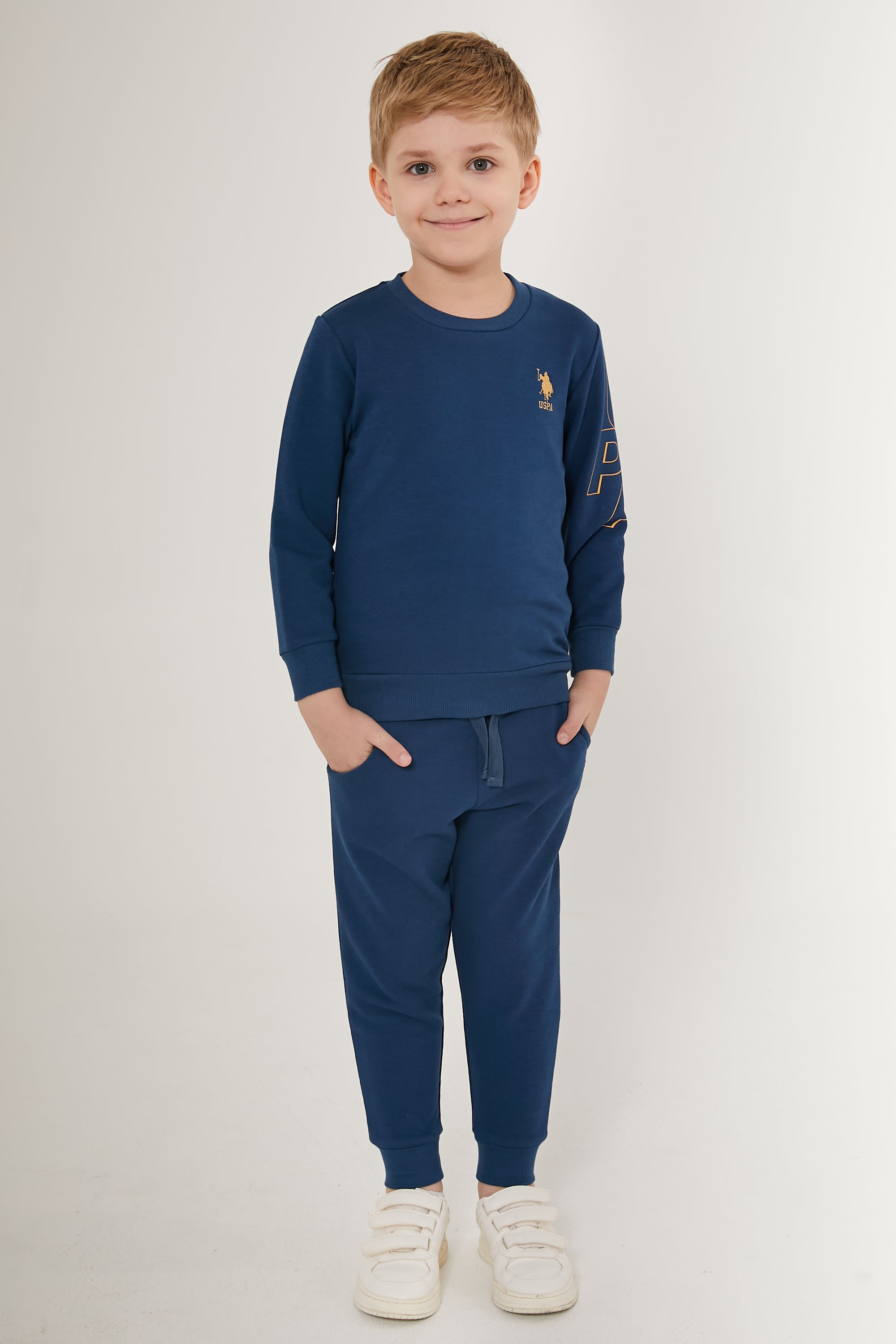 Sportski plavi duks sa donjim delom trenirke predstavlja udobnu i praktičnu kombinaciju za svakodnevne dečije aktivnosti. Duks je jednostavnog dizajna sa dugim rukavima i okruglim izrezom oko vrata, dok na prednjem delu ima diskretan logo koji dodaje markiranu notu. Donji deo trenirke je u istoj boji sa elastičnim pojasom za bolje pristajanje i udobnost tokom nošenja. Opremljen sa džepovima, omogućava praktičnost za nošenje sitnih predmeta. Komplet je izrađen od mekog i izdržljivog materijala, idealan za igru i druženje. Na nogama su bele patike koje upotpunjuju ležeran izgled, a istovremeno pružaju podršku i udobnost malim stopalima. Ovaj komplet je savršen za školske dane ili vikend avanture.