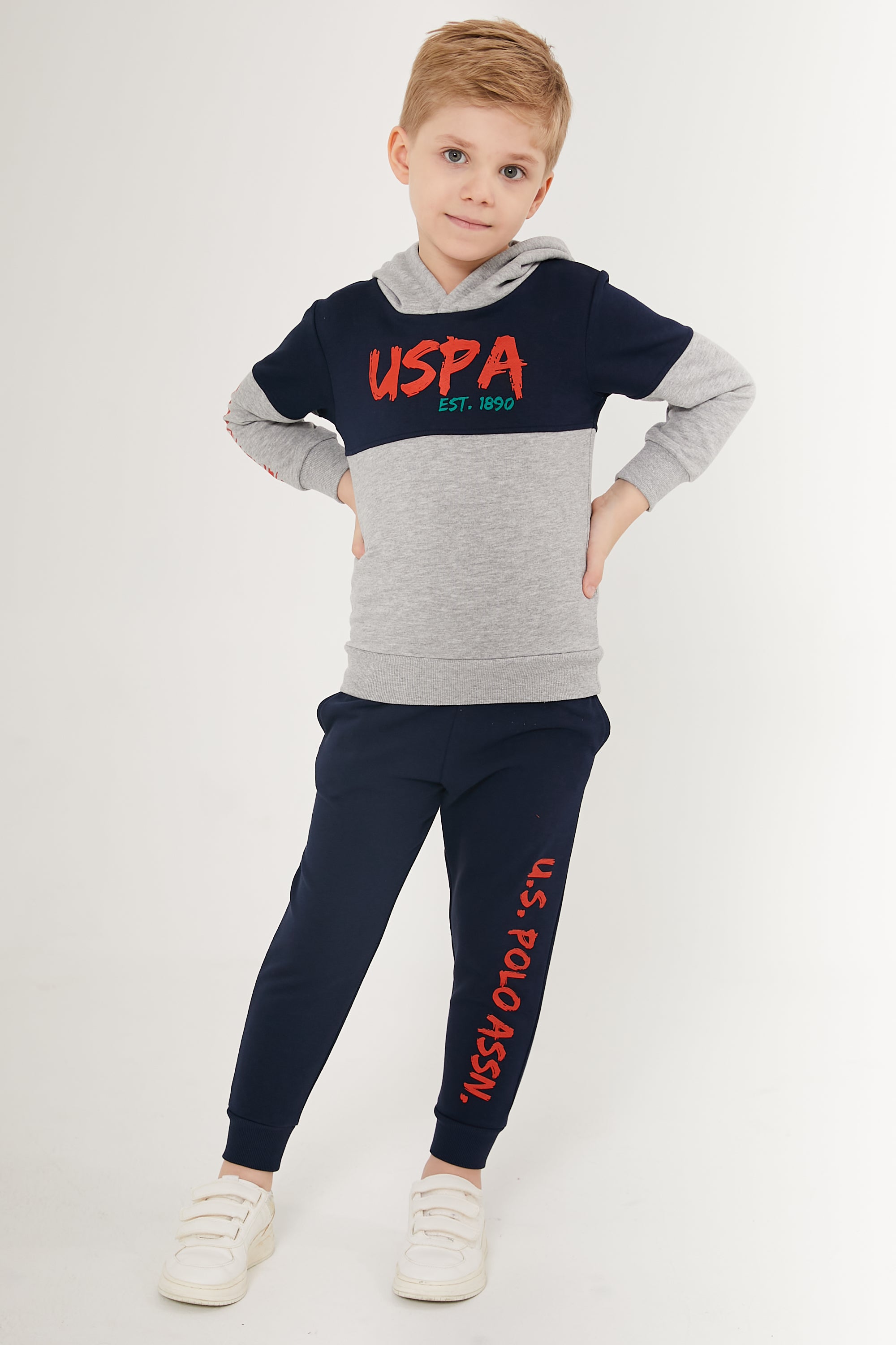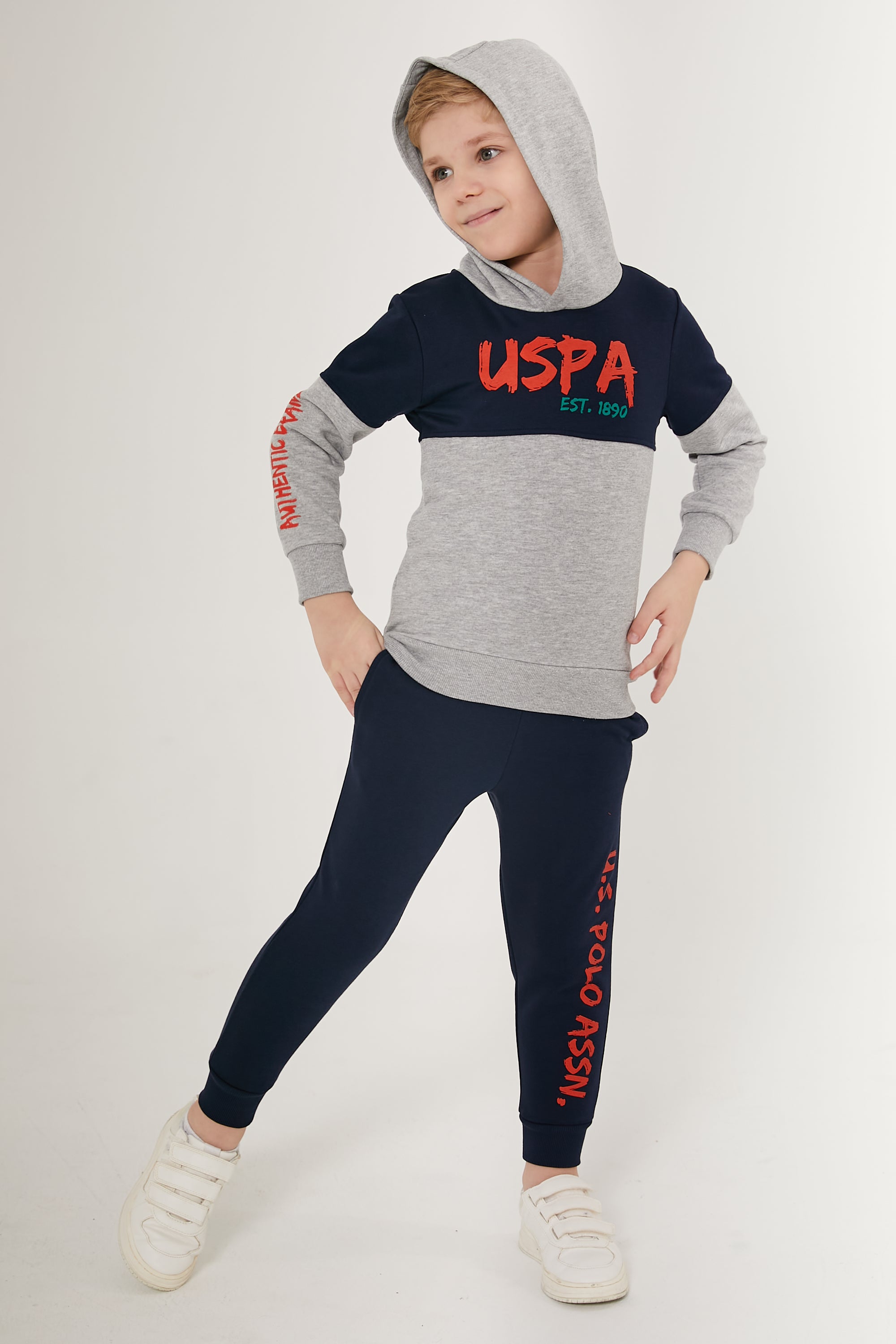 Sportski dečiji duks sa kapuljačom je praktičan i udoban izbor za svakodnevne aktivnosti. Karakteriše ga opušteni stil sa kombinacijom tamno plave i sive boje, dok narandžasti natpis na prednjoj strani dodaje vedar i razigran akcenat. Duks ima dugačke rukave i kapuljaču koja štiti od vetra, što ga čini idealnim za hladnije dane. Uz to, pantalone u kompletu su u istoj boji sa istaknutim natpisom duž nogavice, što stvara usklađen izgled. Izrađen od mekog i izdržljivog materijala, ovaj duks je savršen za igru i razne dečije aktivnosti. U kombinaciji sa patikama, kao što je prikazano na slici, ovo je odličan izbor za školu ili slobodno vreme.