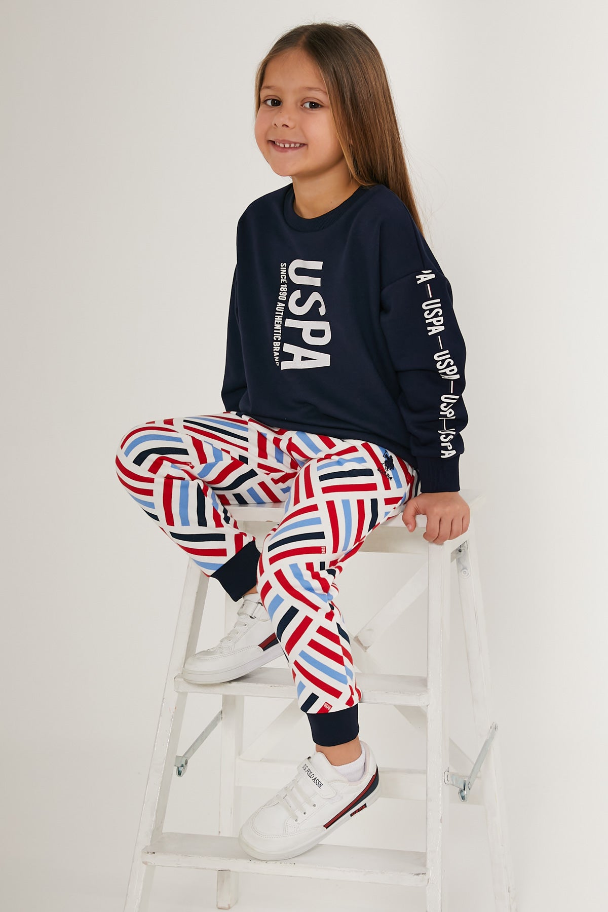Sportska tamnoplava dukserica je udobna i funkcionalna, idealna za svakodnevne aktivnosti. Karakteriše je opušteni kroj koji pruža slobodu pokreta, sa dugim rukavima i vidljivim logotipom na prednjoj strani. U kombinaciji sa šarenim pantalonama koje imaju zanimljiv šablon u bojama američke zastave, ovaj komplet je veselog i razigranog izgleda. Pantalone su opuštenog kroja, što ih čini savršenim za igru i zabavu. Na nogama su bele patike sa plavim detaljima, koje dopunjuju sportski izgled. Ovaj outfit je odličan izbor za decu koja vole udobnost i stil u isto vreme.