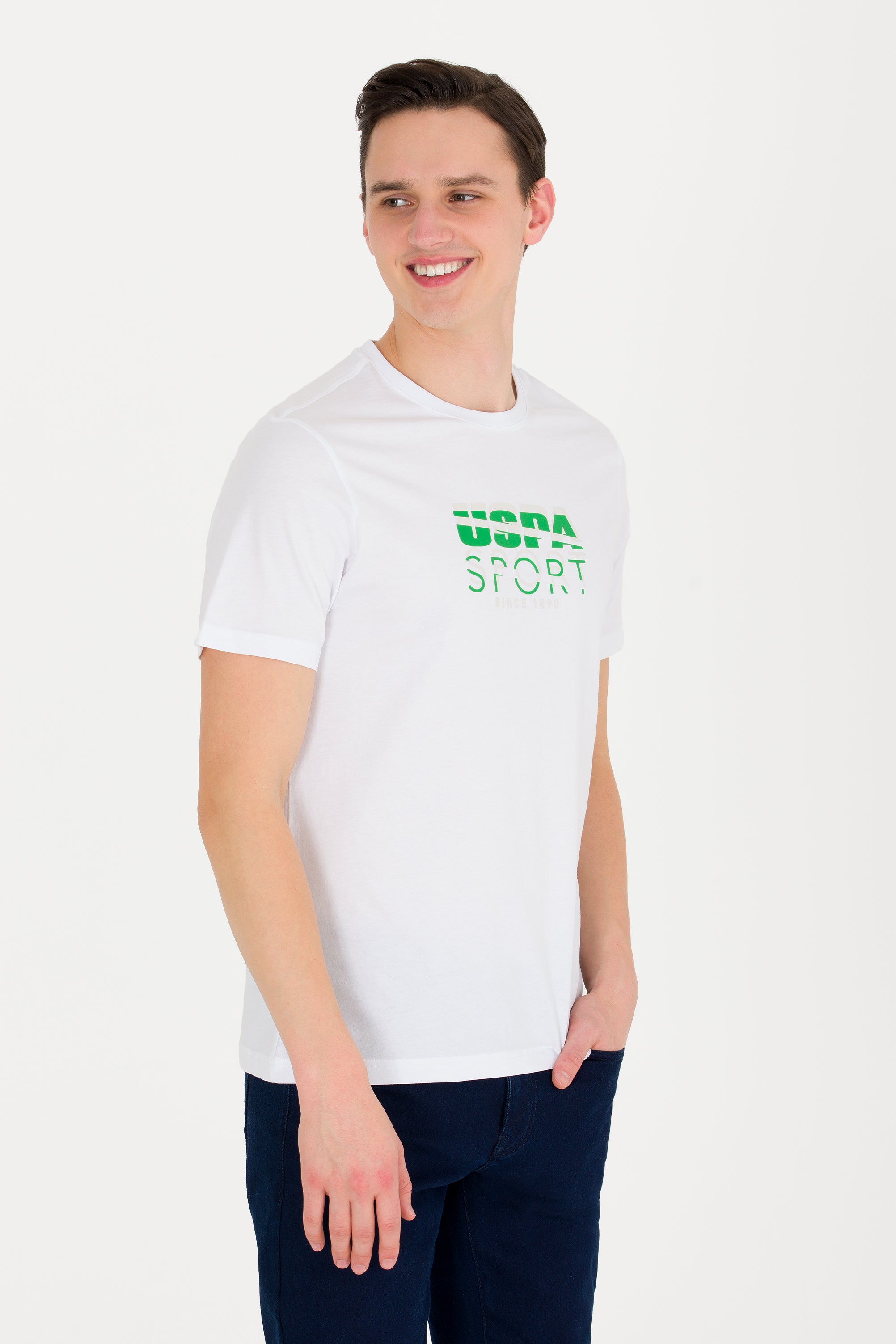 Moderna majica kratkih rukava u čisto beloj boji savršena je za svakodnevne aktivnosti. Krasi je štampani zeleni natpis na prednjoj strani koji dodaje sportski duh odevnom komadu. Izrađena od kvalitetnog pamuka, ova majica obećava udobnost i prozračnost tokom toplijih dana. Jednostavnog kroja sa okruglim izrezom oko vrata, lako se kombinuje sa raznovrsnim odevnim kombinacijama poput farmerki, šortseva ili trenerki. Idealna za muškarce koji cene casual stil i udobnost.