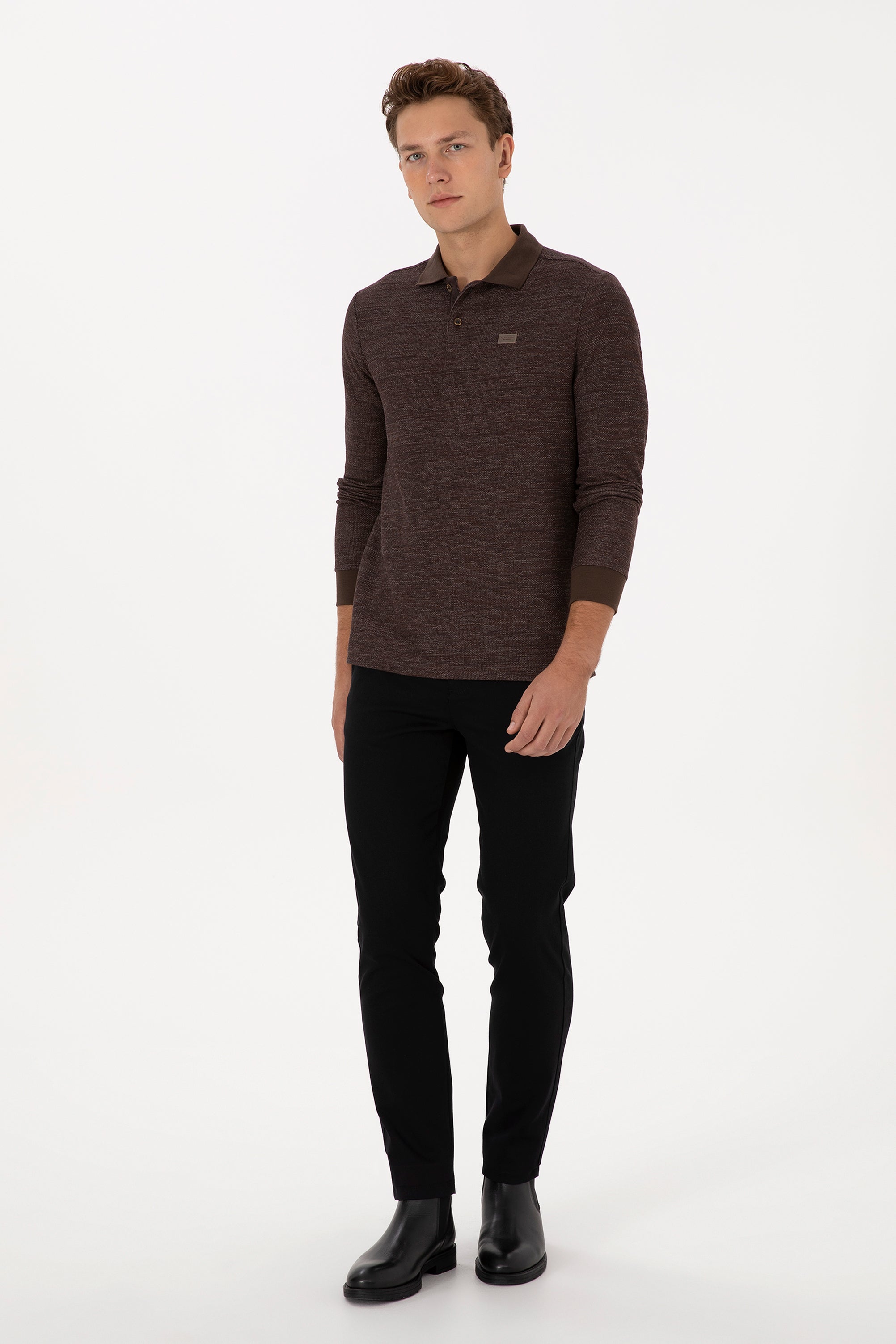 Muška Smeđa Polo Majica Dugih Rukava