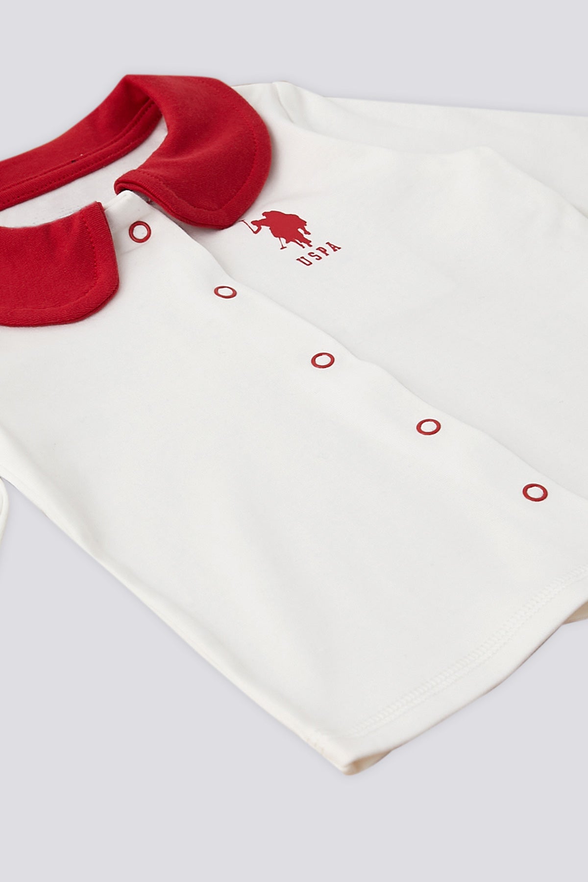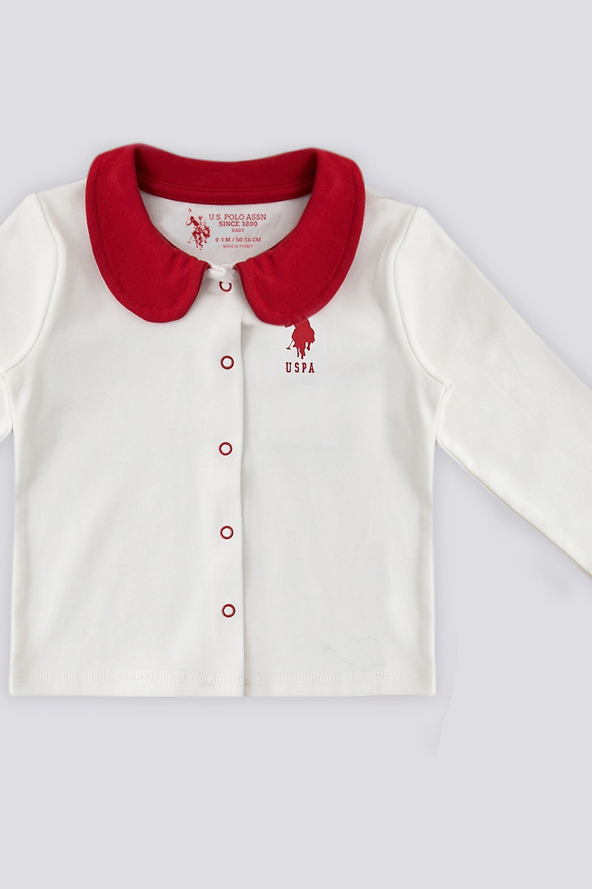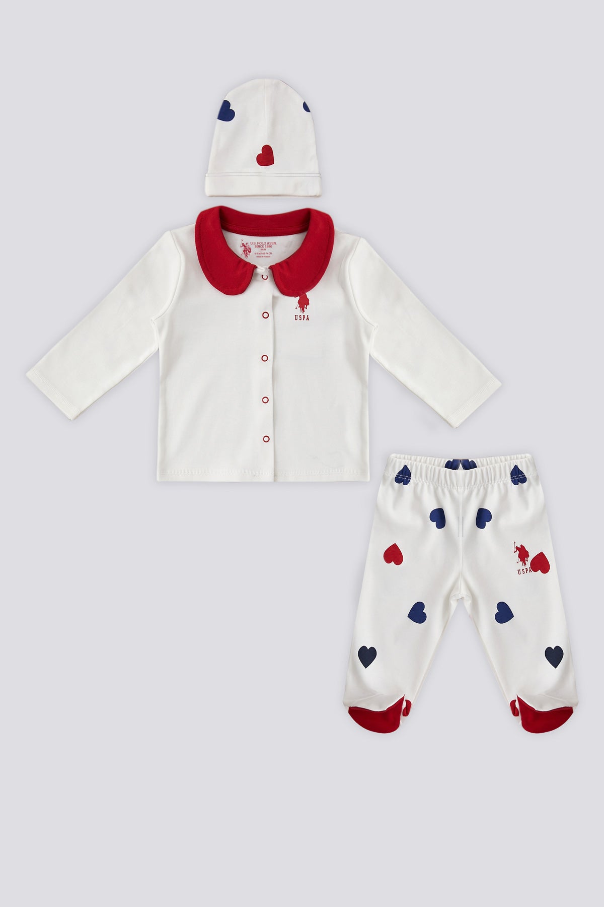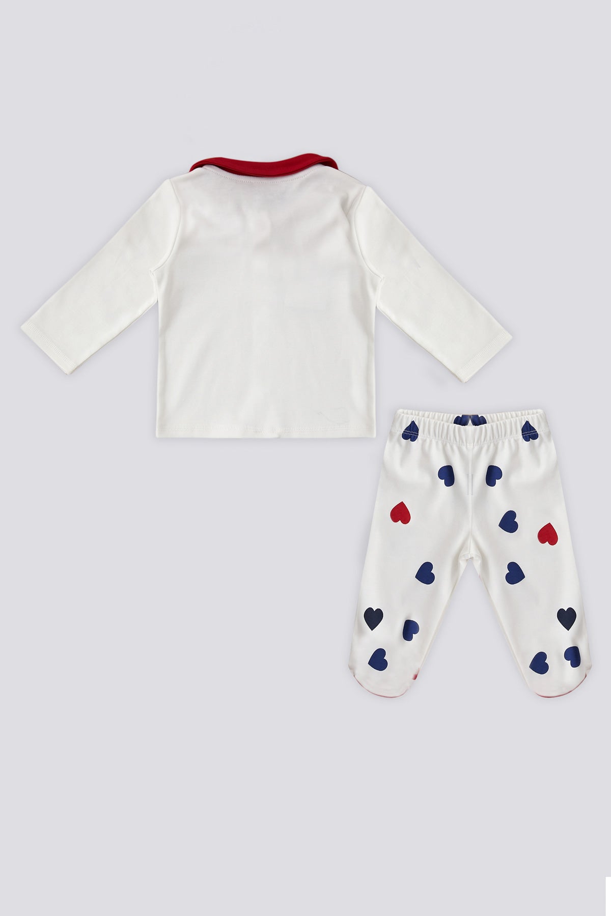 Šarmantni dečiji komplet odjeće savršen je izbor za svakodnevno udobno nošenje. Sastoji se od bele majice dugih rukava i pantalona sa šarenim printom srca. Majica ima crvenu kragnu koja dodaje živopisan kontrast i čini ga razigranim, a zatvara se pomoću dugmića na prednjoj strani što olakšava oblačenje. Pantalone su bele sa crvenim i plavim srcima, a elastični pojas obezbeđuje da se lako prilagođavaju i pružaju maksimalnu udobnost. Izrađen od mekog i prijatnog materijala, ovaj komplet je idealan za igru i odmor malih avanturista.