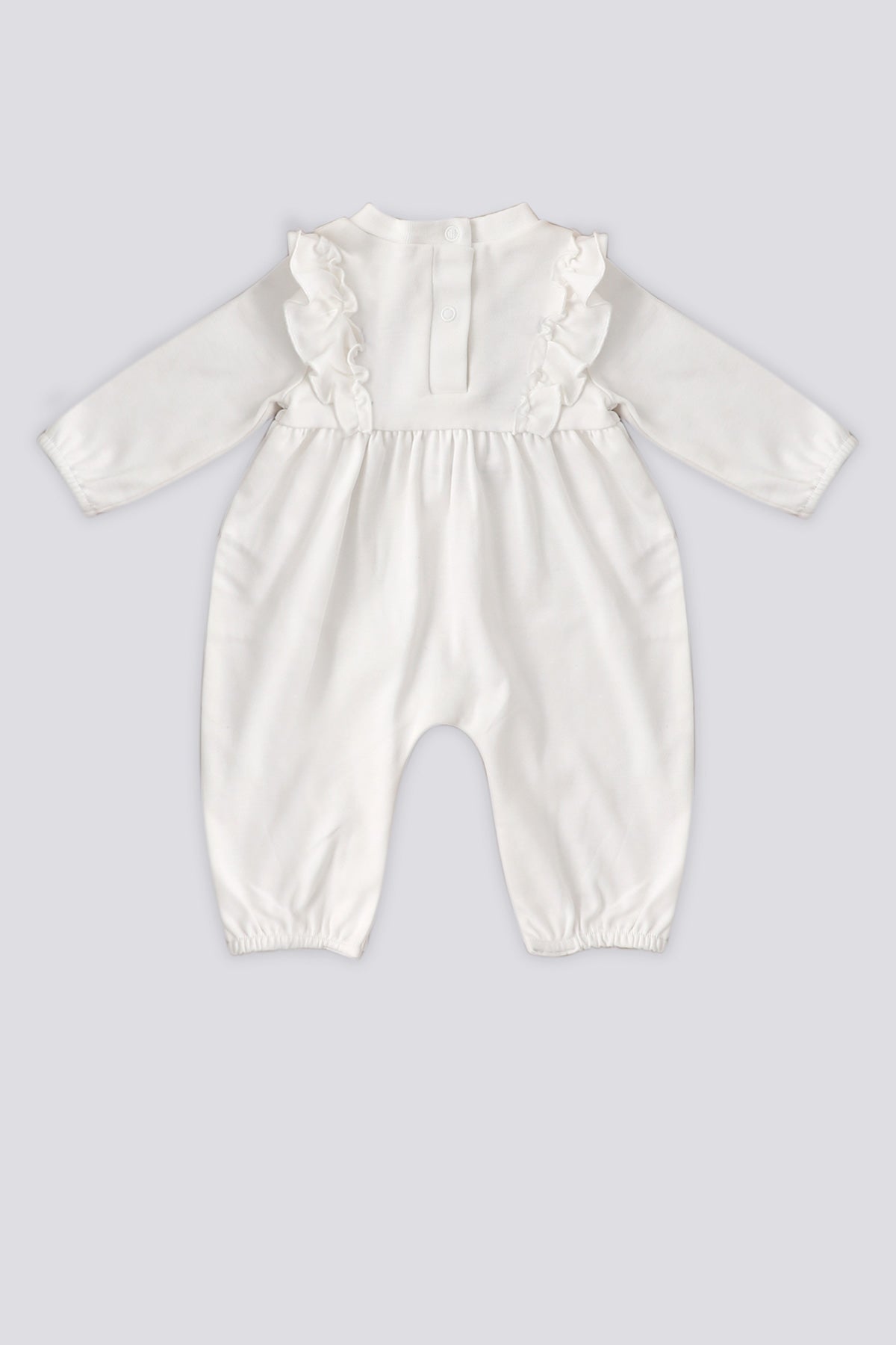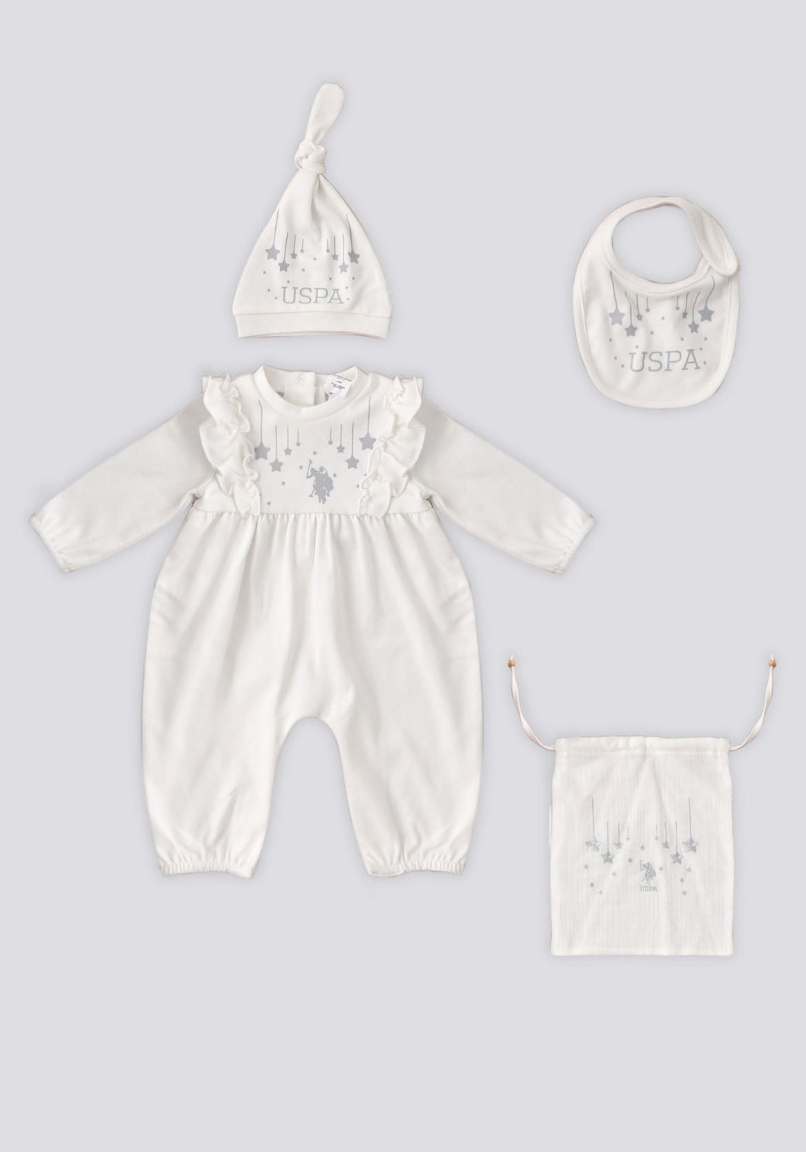 Nežni beli komplet za bebu je savršen spoj udobnosti i stila, idealan za svečane prilike ili kao elegantan svakodnevni izbor. Set uključuje bodi sa elastičnim pojasom za lako oblačenje, uz prateću kapicu koja pruža toplinu i komfor. Detalji poput volana i diskretnog veza na bodiju dodaju sofisticiranu notu. Uz ovaj komplet dolazi i slatka vrećica, kao i bib (podbradak) koji zaokružuju celokupni izgled, čineći ga funkcionalnim i stilizovanim. Izrađen od mekog i prijatnog materijala, ovaj komplet je ne samo šarmantan već i praktičan izbor za vašu bebu.
