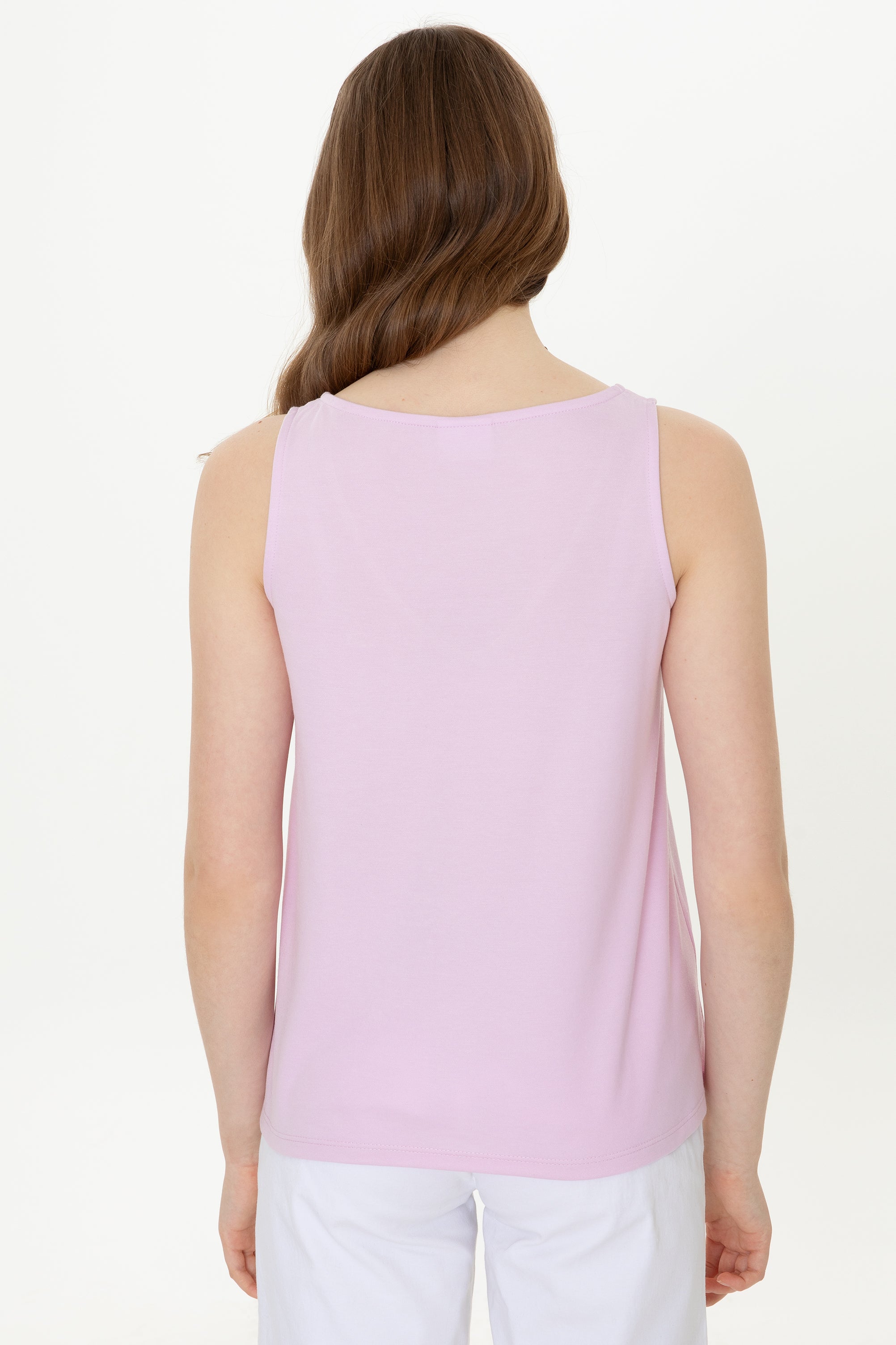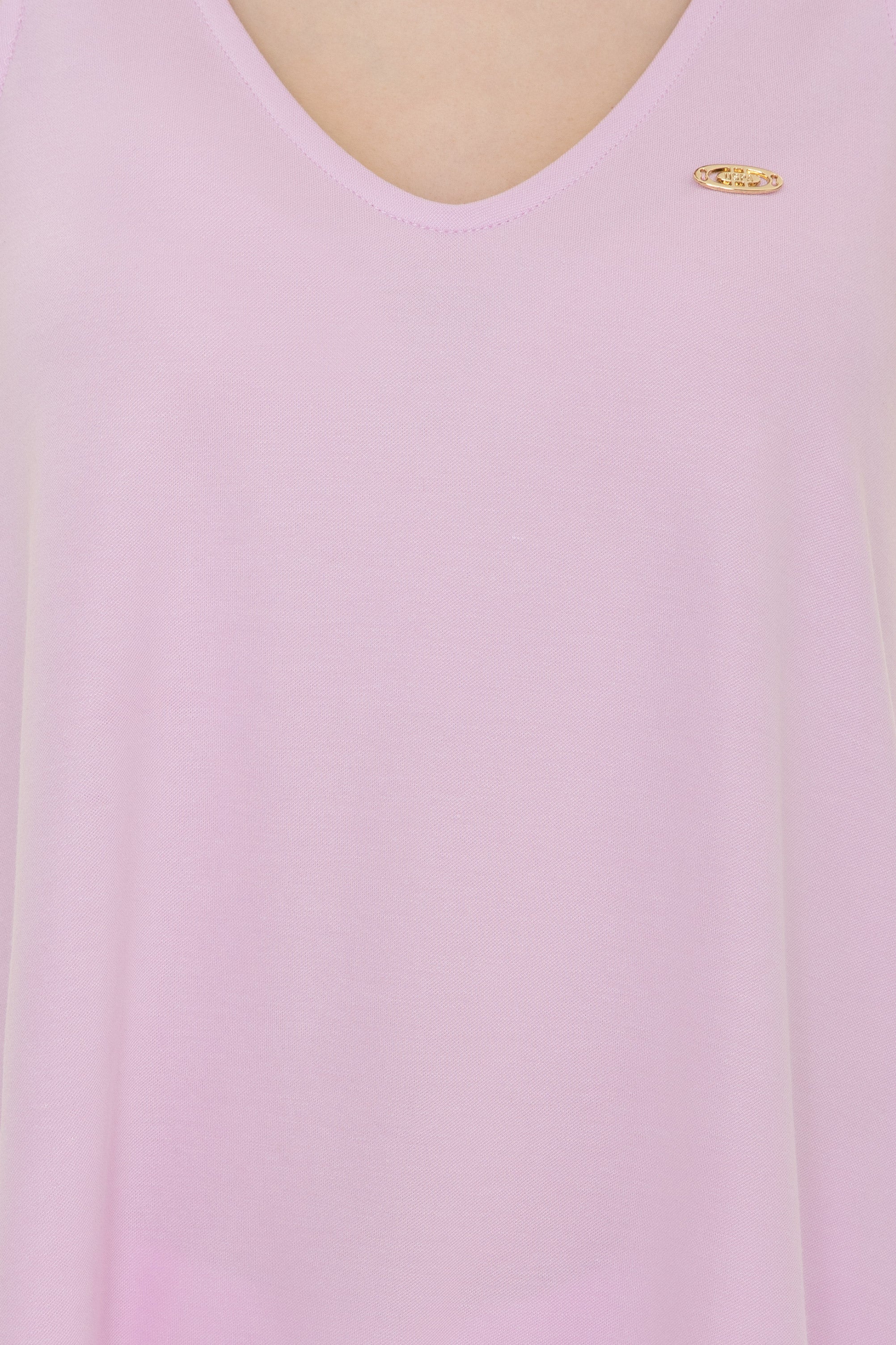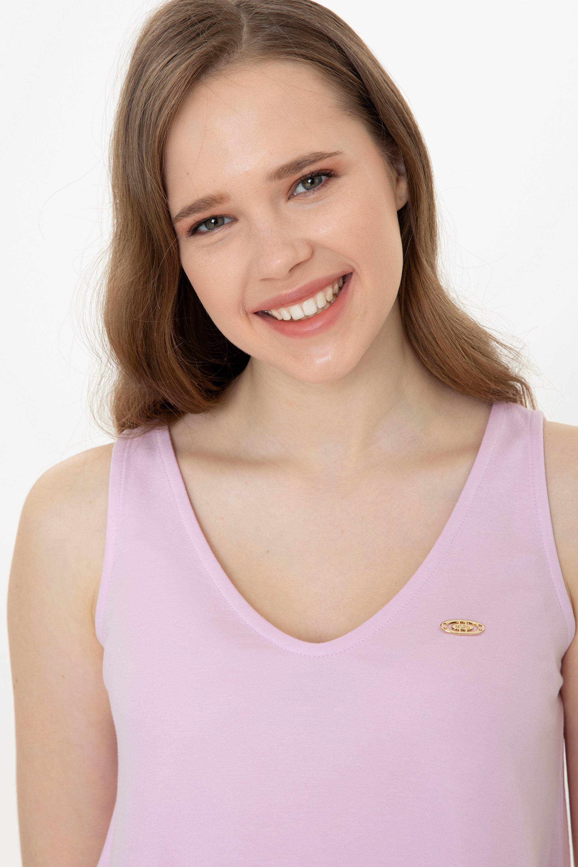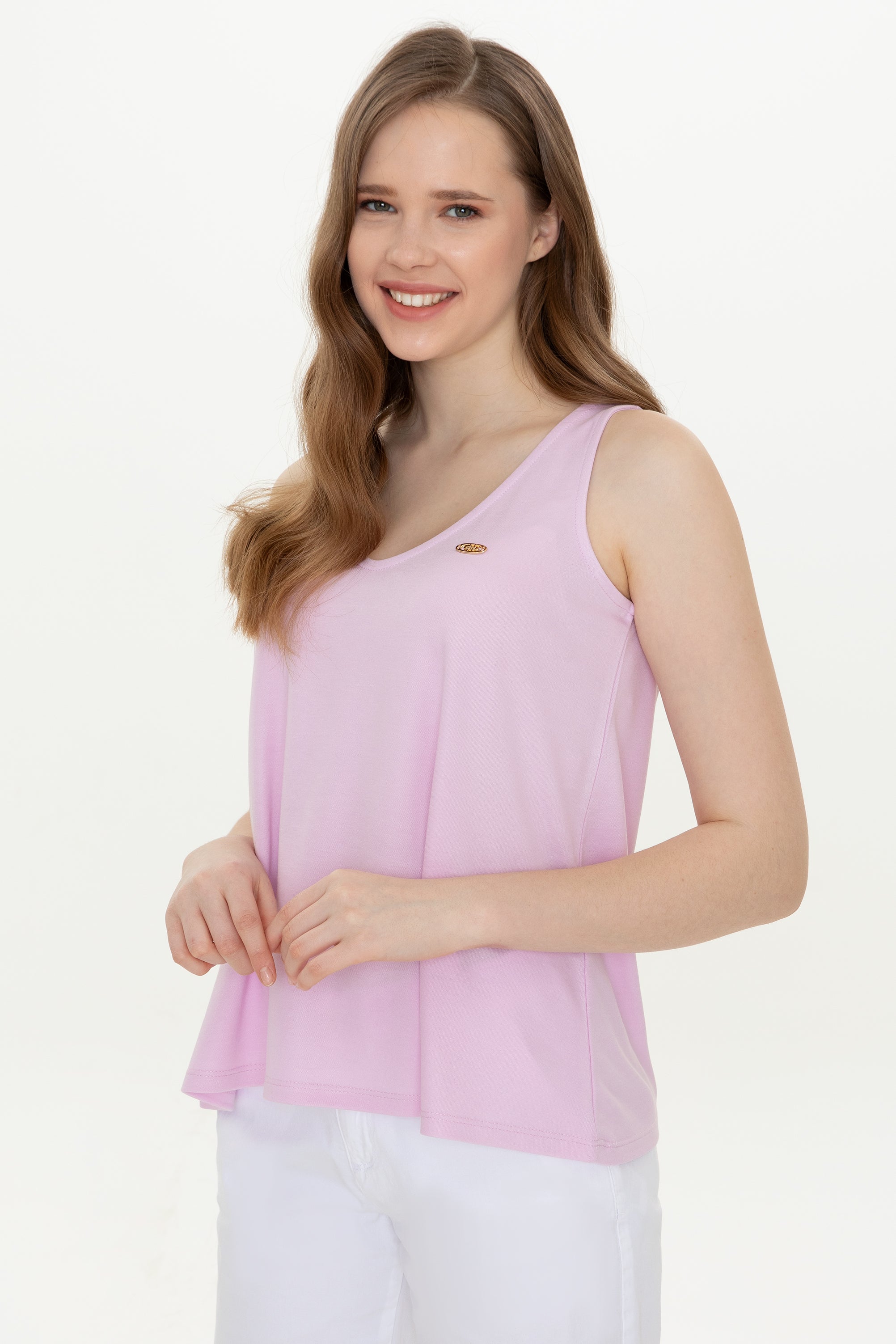 Ženstvena roze majica bez rukava predstavlja jednostavan i prozračan izbor za tople dane. Karakteriše je ležeran kroj sa blago A-linijom koji pruža slobodu pokreta i udobnost. Izrađena od mekog i lagano elastičnog materijala, ova majica je prijatna za nošenje i lako se kombinuje sa različitim stilovima donjeg dela garderobe, poput farmerki ili šortseva. Njen pastelni ton daje svežinu i ženstvenost svakom stajlingu, dok mali metalni logo na prednjoj strani dodaje diskretan, ali prepoznatljiv detalj. Idealna je za dnevne aktivnosti ili casual izlaske.