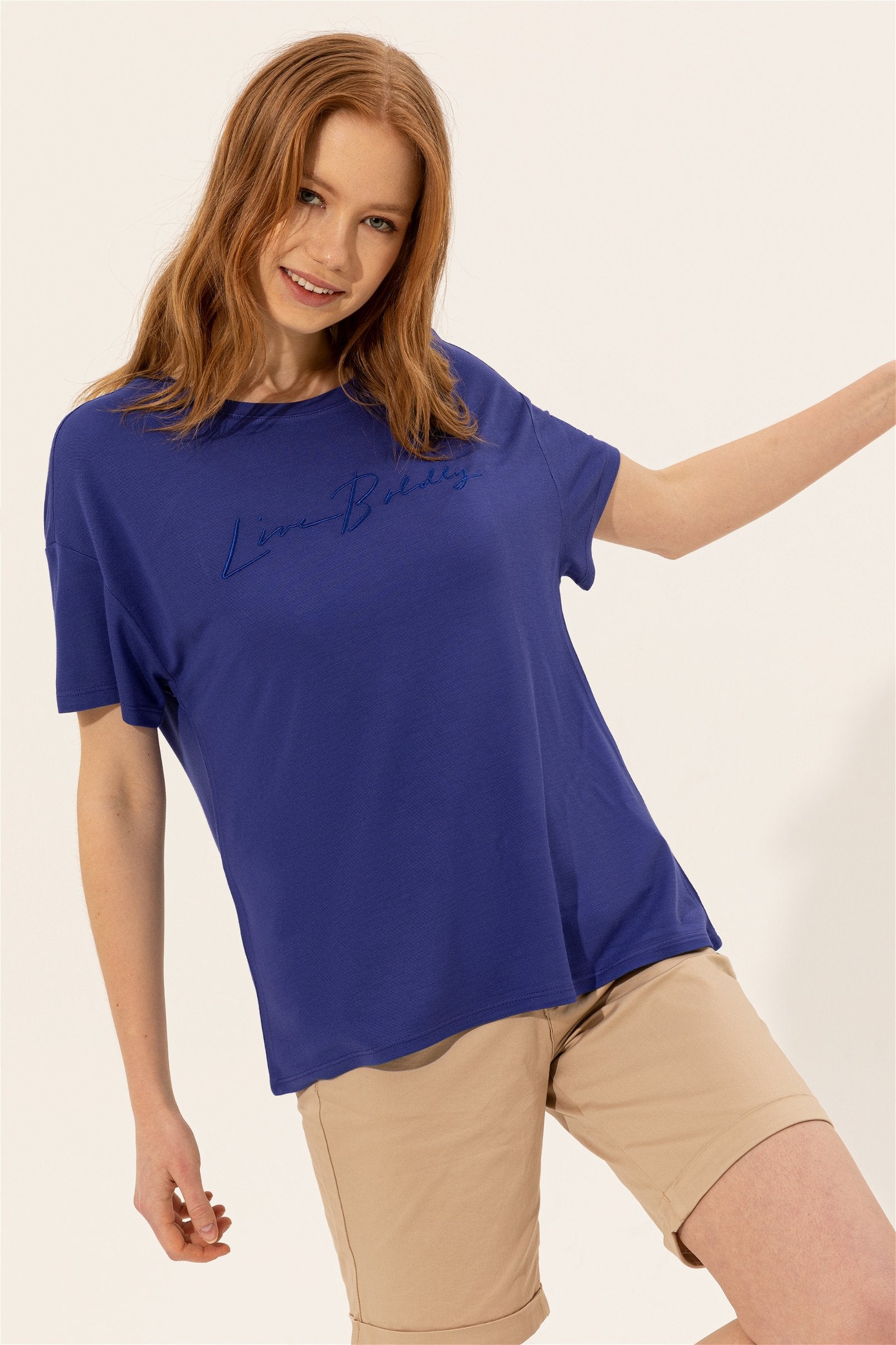 Ležerna bela majica sa kratkim rukavima predstavlja savršen spoj udobnosti i jednostavnog stila. Karakteriše je opušteni kroj koji pruža slobodu pokreta i udobnost tokom celog dana. Na prednjoj strani je decentno ispisan natpis, što dodaje moderni pečat ovom osnovnom komadu garderobe. Majica je izrađena od mekog i prozračnog materijala, što je čini idealnom za svakodnevno nošenje. Može se lako kombinovati sa različitim stilovima pantalona ili suknji, a na slici je uparena sa pantalonama nežne bež boje, stvarajući opušten, ali stilizovan izgled.