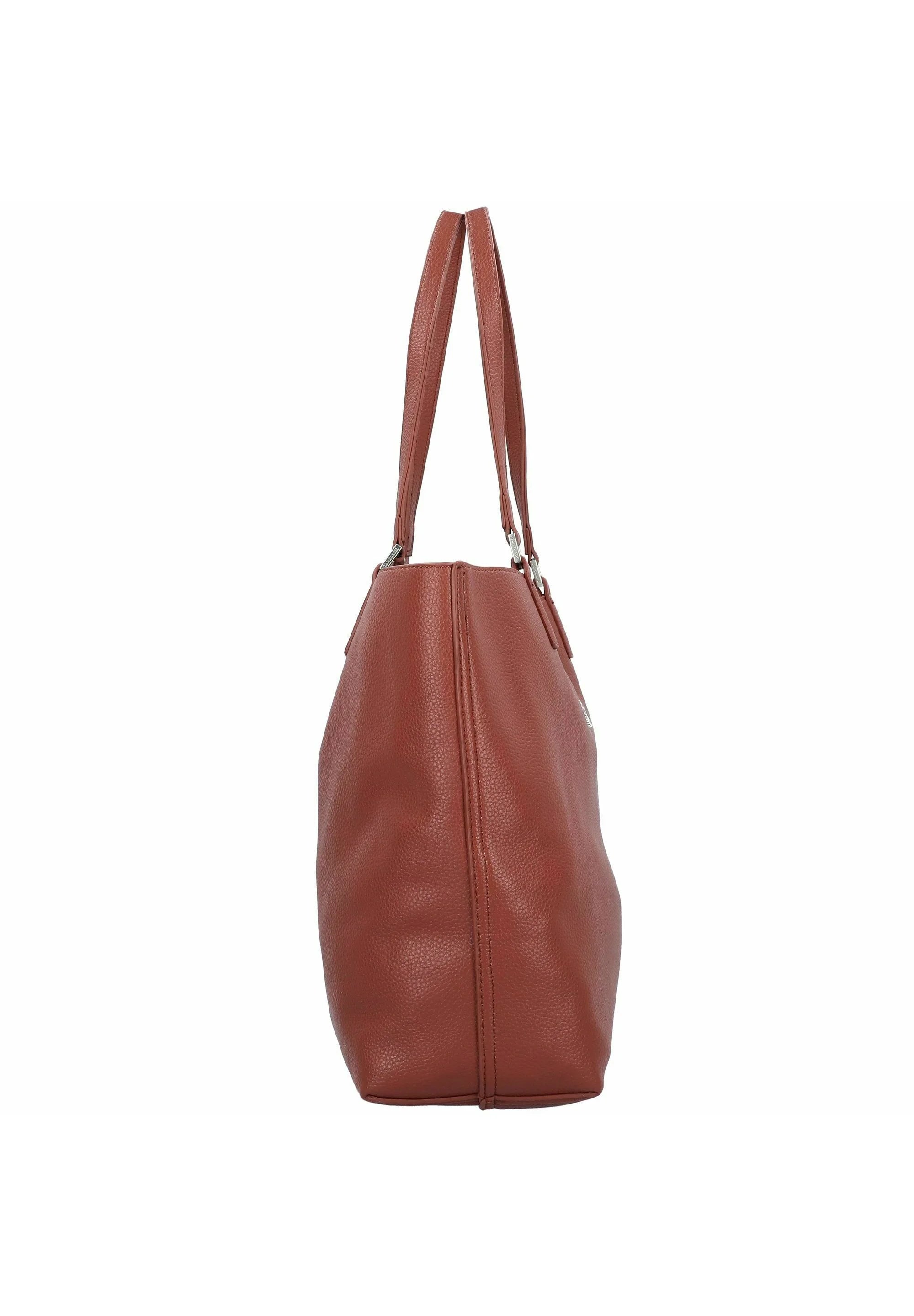 Elegantna torba u bogatoj boji konjaka, izrađena od visokokvalitetne kože koja obećava dugovečnost i nosivost. Prostrana unutrašnjost torbe omogućava praktično odlaganje svakodnevnih predmeta, dok višestruki unutrašnji džepovi olakšavaju organizaciju manjih stvari. Dve čvrste ručke doprinose udobnosti pri nošenju, a svedeni logotip brenda na prednjoj strani dodaje sofisticirani pečat. Ova torba je idealan izbor za žene koje cene kvalitet i funkcionalnost, a pritom žele da očuvaju eleganciju u svakoj prilici, od odlaska na posao do večernjih izlazaka.