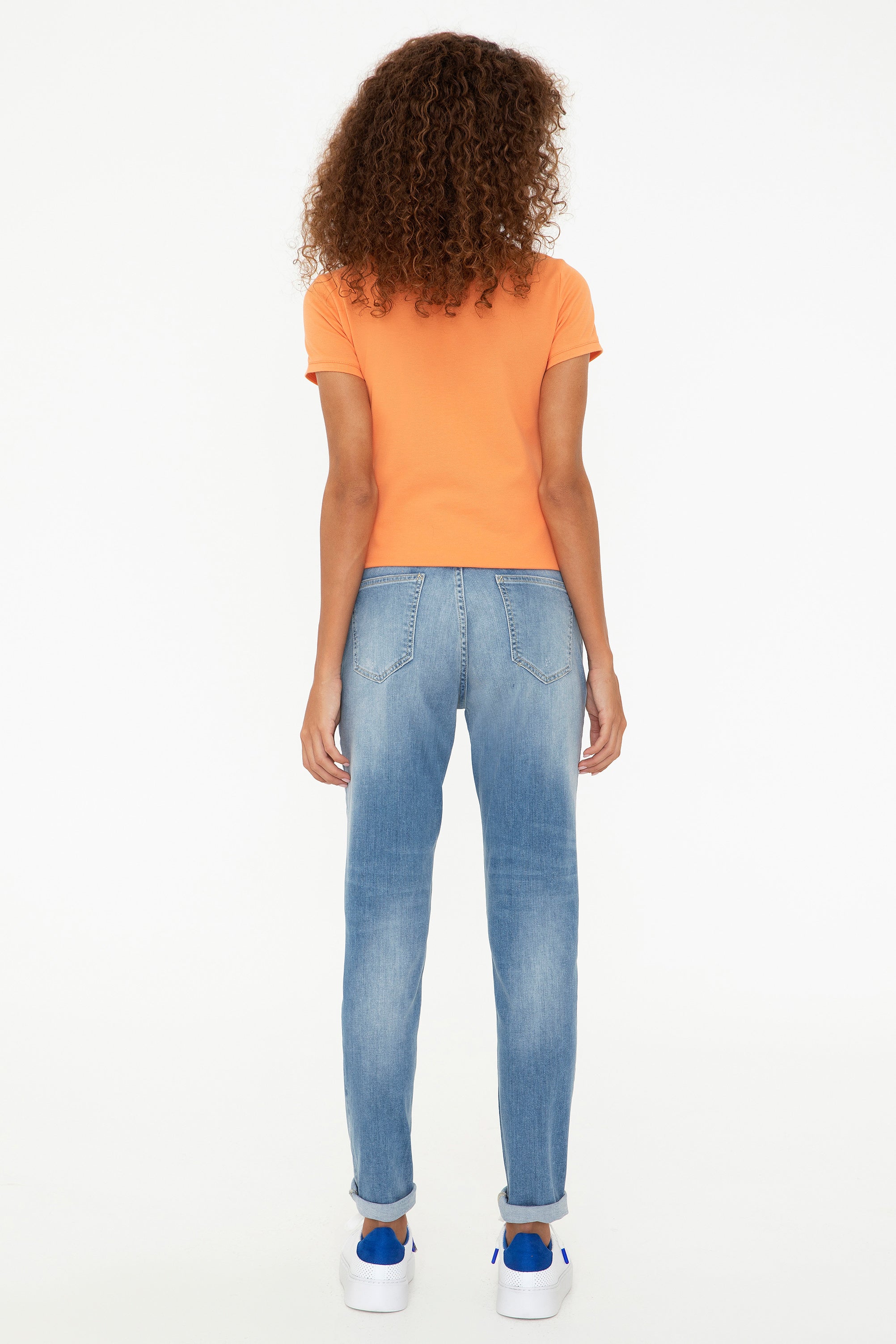 Klasične farmerke svetloplave boje su osnova svakog kežual stila, a ovaj model to savršeno dokazuje svojom neprolaznom rezom koji odlično pristaje uz različite oblike tela. Izrađene od čvrstog denim materijala, ove farmerke obećavaju izdržljivost i otpornost, a istovremeno pružaju udobnost zahvaljujući blagom elastinu koji omogućava slobodu pokreta. Karakterišu ih standardne pet džepova koje nude praktičnost i funkcionalnost, dok suptilno izbeleni detalji na tkanini doprinose opuštenom i urbanoj estetici. Farmerke su lako kombinovati sa raznolikim gornjim delovima odjeće, bilo da se odlučite za sportsku majicu, kao na slici, ili neki elegantniji komad poput košulje ili blejzera, stvarajući efektan izgled za svaku priliku.