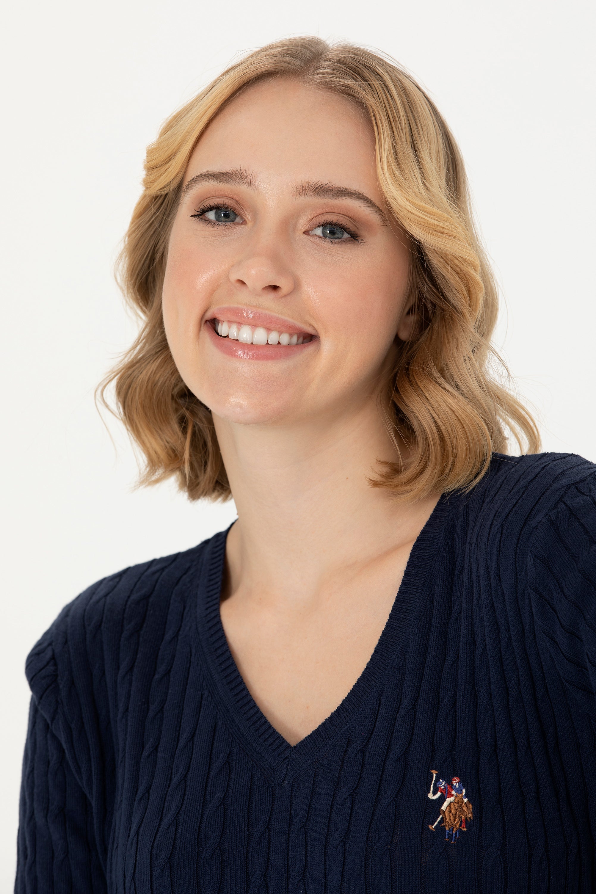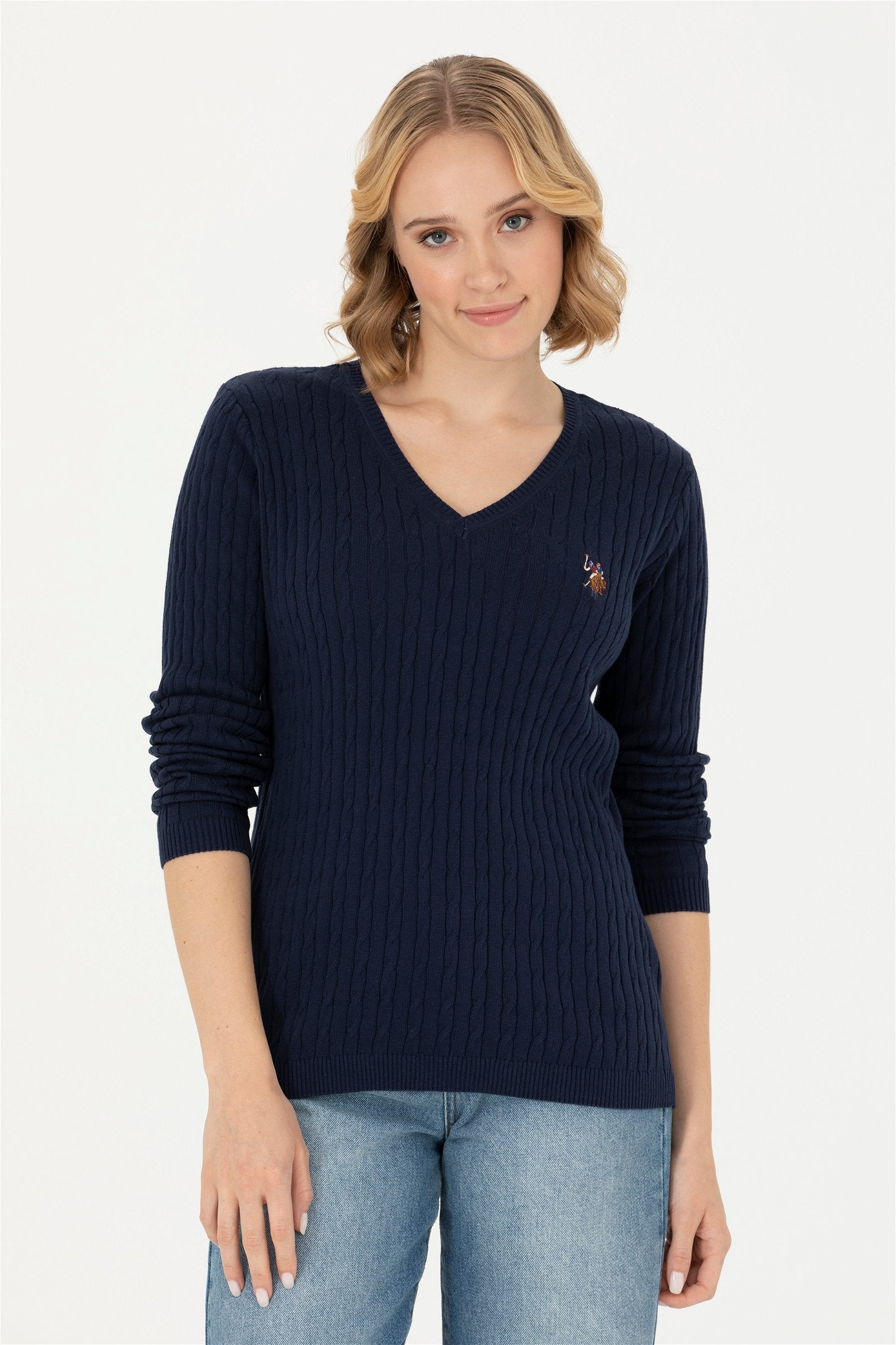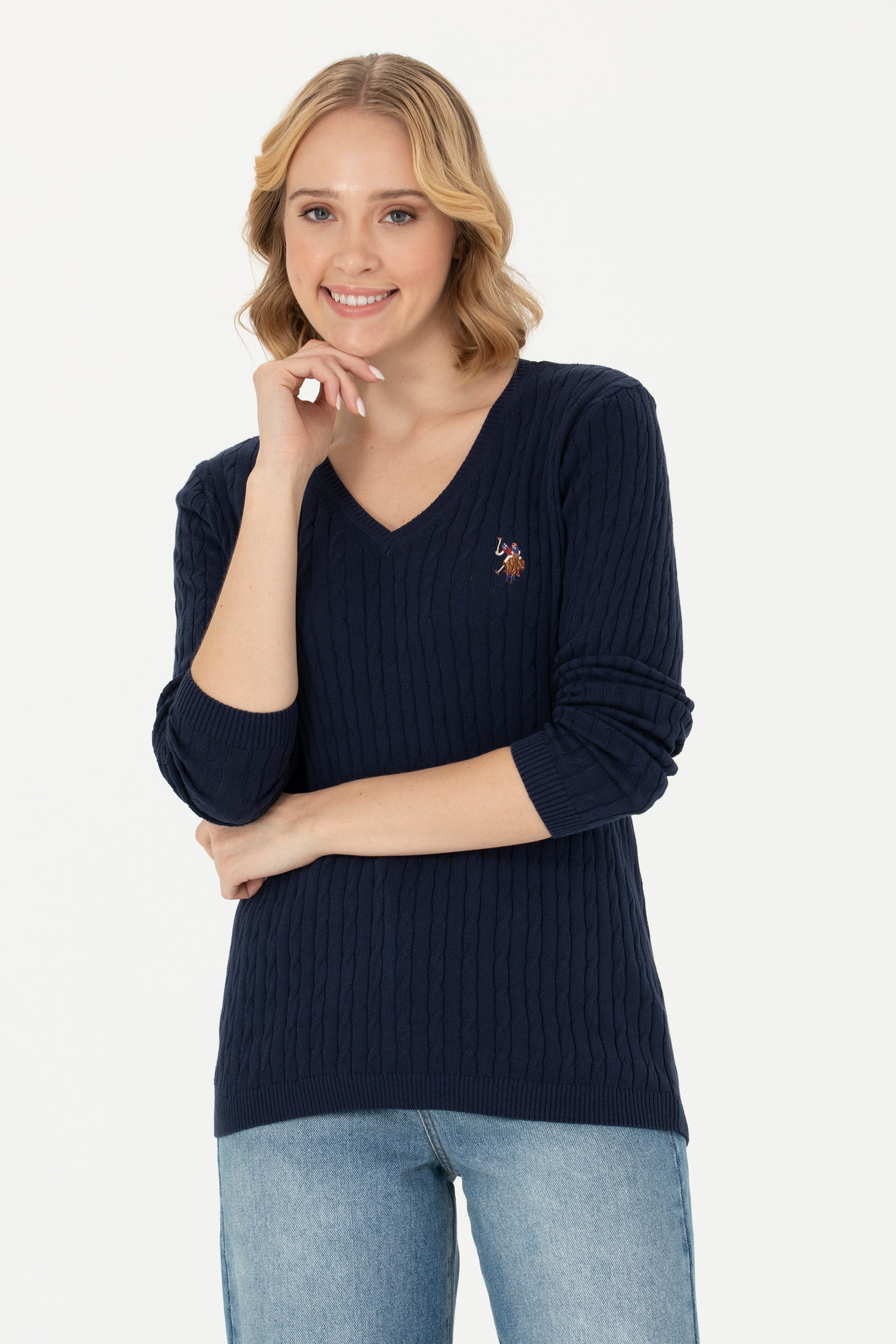 Klasični mornarski plavi džemper odlikuje se jednostavnošću i udobnošću. Karakteriše ga V-izrez koji doprinosi ležernom izgledu, dok rebrasti uzorak pruža dodatnu teksturu i vizuelni interes. Džemper ima duge rukave i standardnu dužinu koja se završava na liniji kukova, što ga čini praktičnim za svakodnevno nošenje. Mali logo na levoj strani grudi dodaje prepoznatljiv detalj brenda. Izrađen od mekog i prijatnog materijala, ovaj džemper je savršen za hladnije dane i može se lako kombinovati sa različitim stilovima pantalona ili suknji za opuštene ili poluformalne prilike.